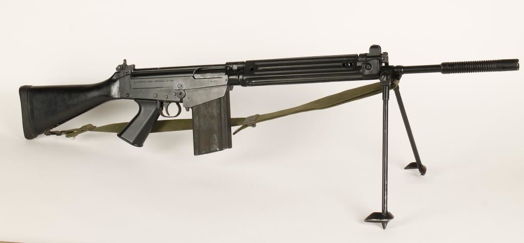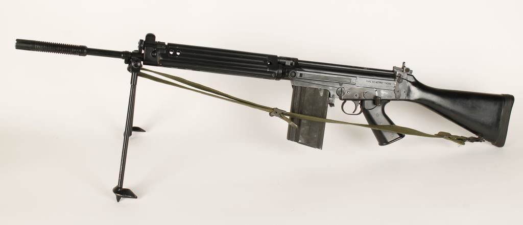 Semi auto version of the FN FAL assault rifle with a 20" barrel. Stamped "Type 03 Metric". Polymer buttstock with rubber recoil pad. Aluminum fore end with integral bipod. Adjustable front and rear sights. Adjustable gas check. Bore is immaculate. Flash hider. Includes tools, sling and 1 mag. Rifle short cycles and may need to be taken to a gunsmith. Condition is good. *Modern Firearm*