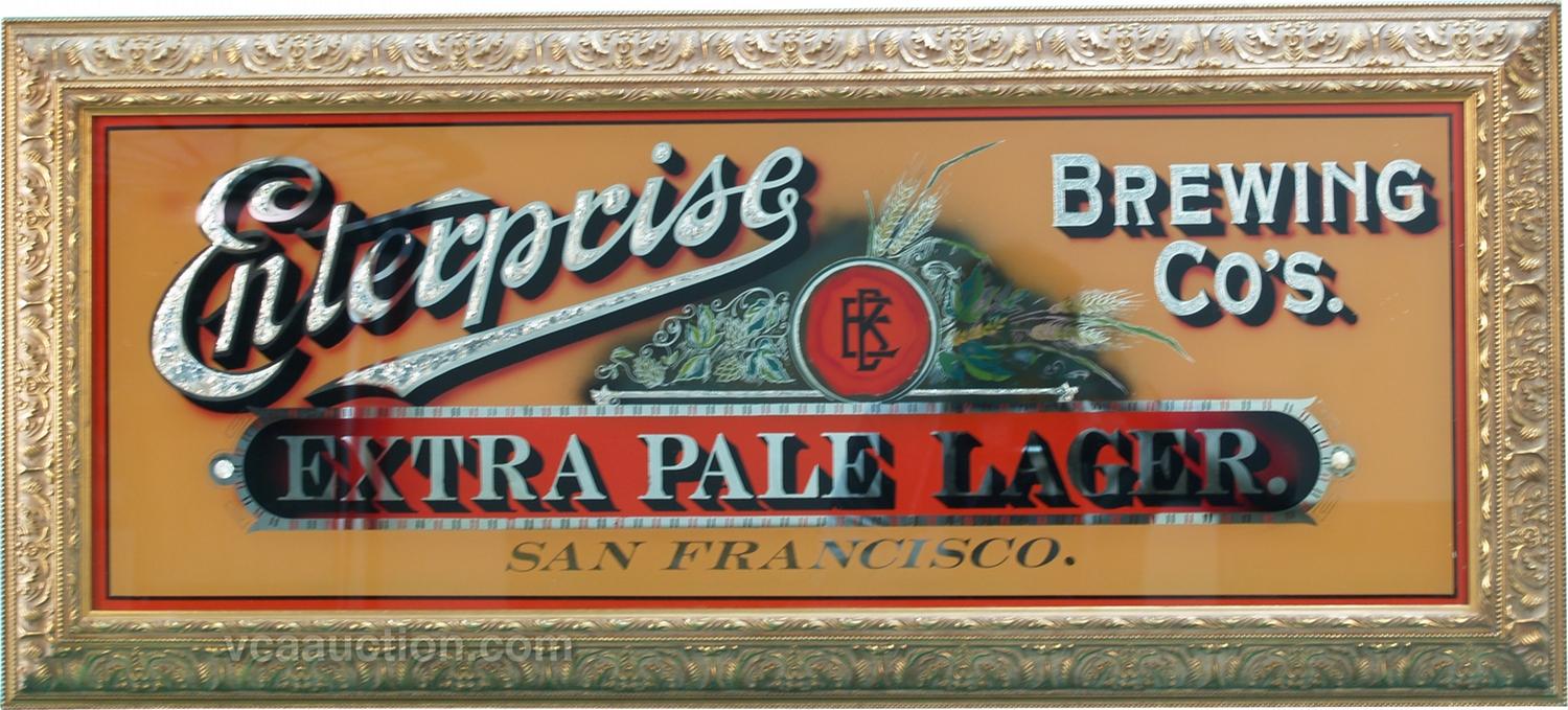 Enterprise Brewing Co.'s "Extra Pale Lager" San Francisco Reverse Glass Sign, in ornate frame, all original, age unknown - 42" x 19"
