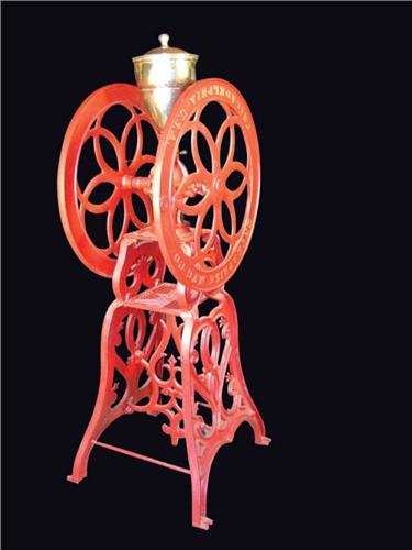 Enterprise Coffee Grinder #716, patent July 12, 1898, Philadelphia, PA. Repainted some time ago. Wheel is 24 1/2 inch diameter and the mill is 58 inches tall.