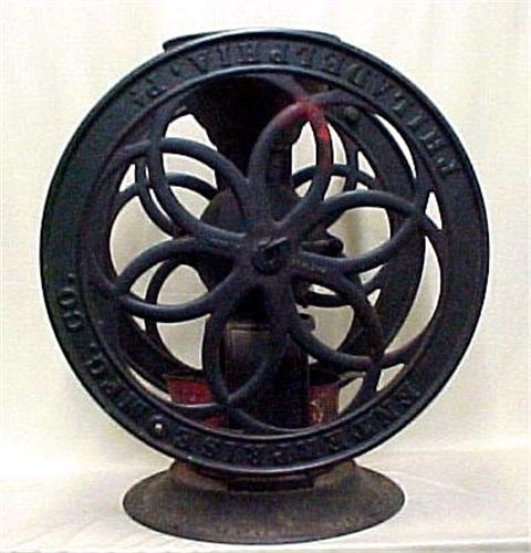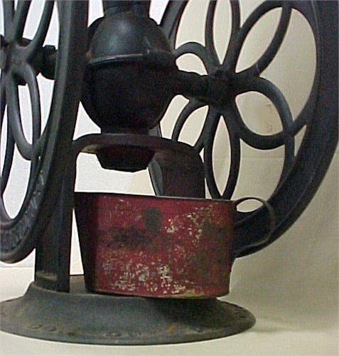 Enterprise coffee grinder; large store model; with original receiver; Chinoiserie decoration on grinder and receiver; 25" high (no visible defects) WILL NOT SHIP.