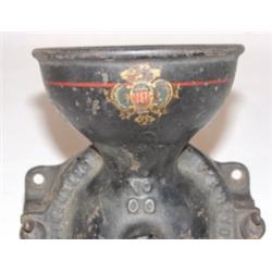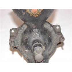 Enterprise wall mounted grinder. Painted black and numbered 2140 on front and 2133 on back.