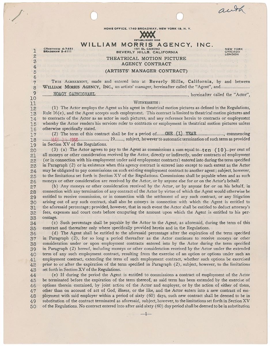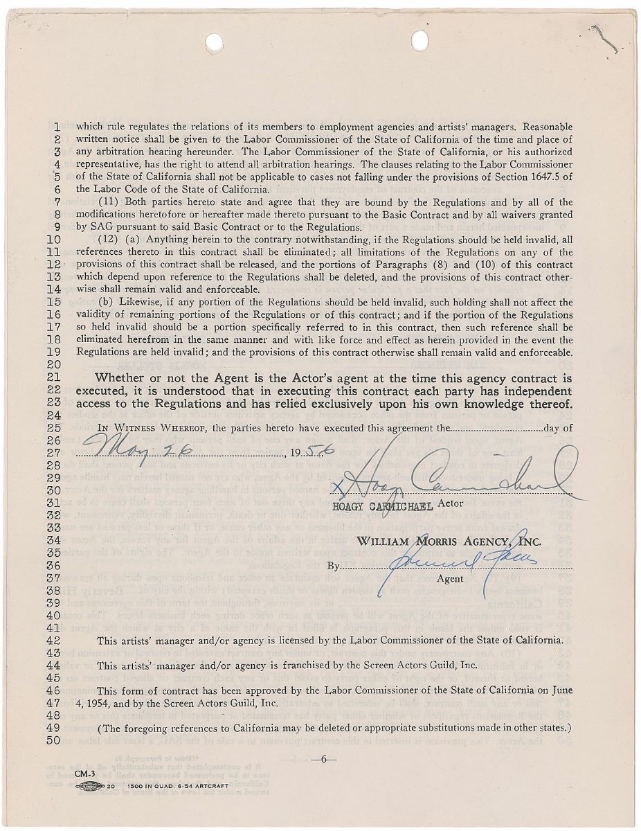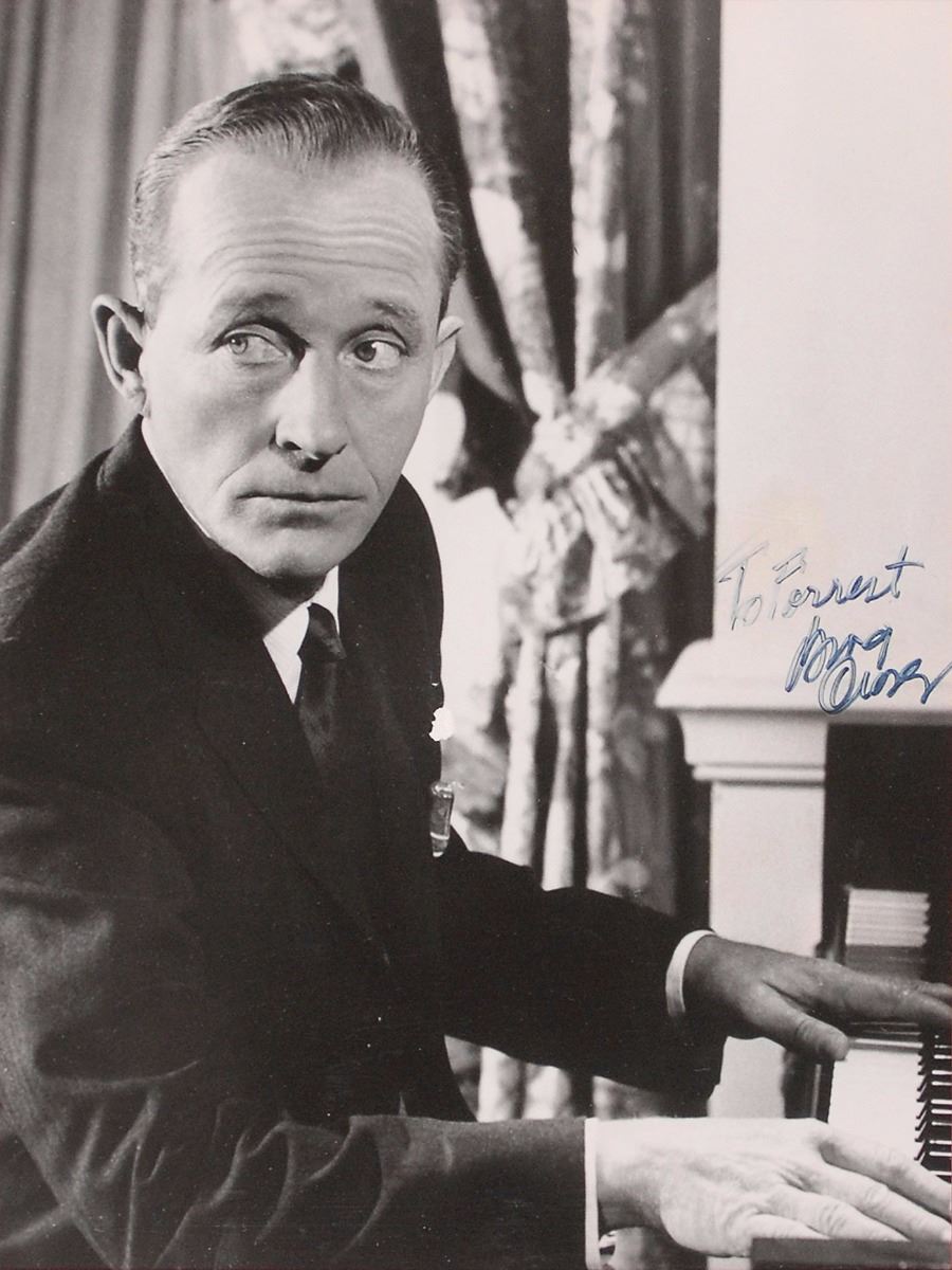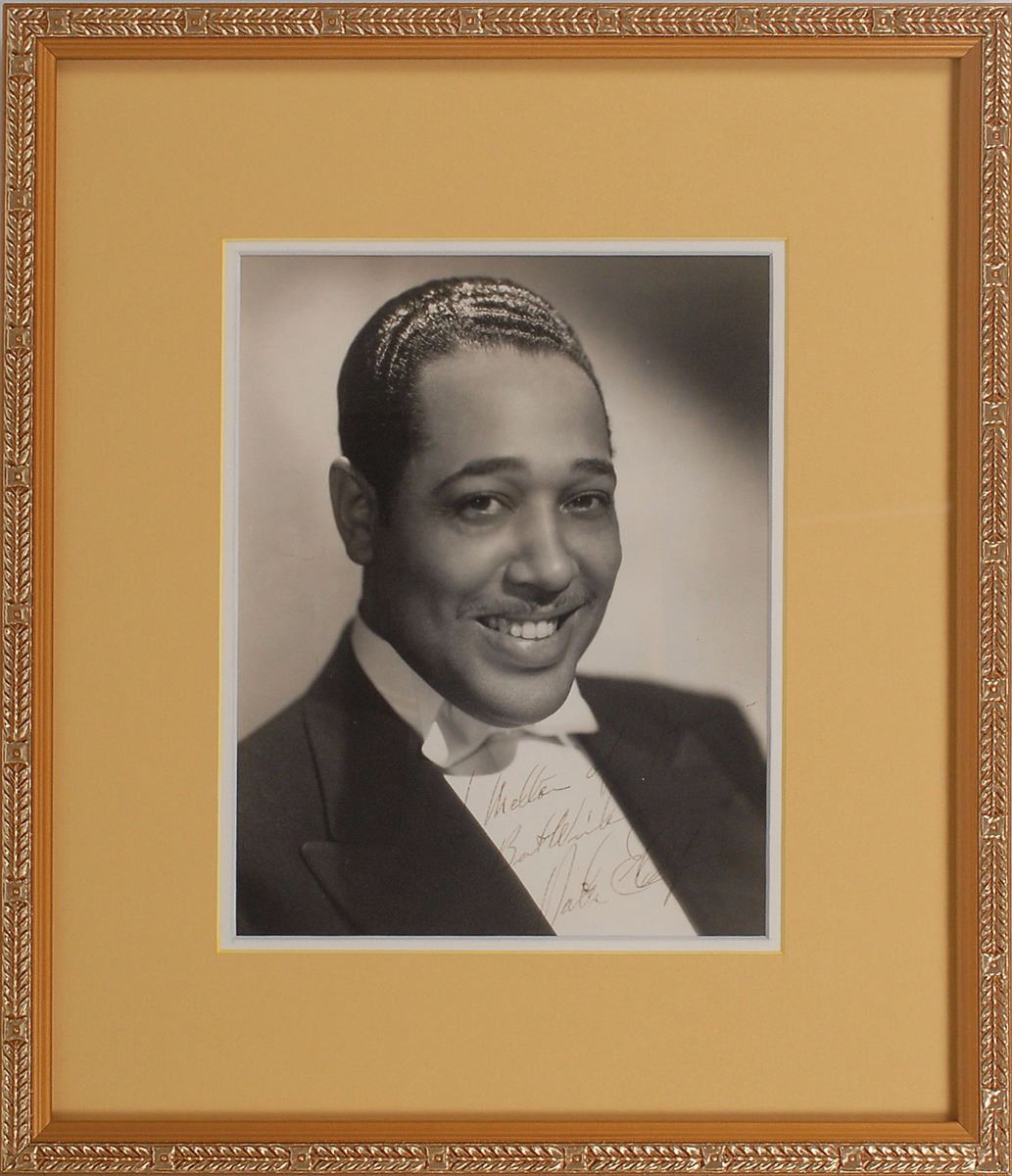 Collection of five items, each signed by one or more notable entertainers, including: Bill Haley and His Comets (signatures on two album pages, ins); Bing Crosby (SP, ins); Marian Anderson (SP); Duke Ellington (SP, ins); and Hoagy Carmichael (DS). In overall fine condition, with a small area of surface loss and a thumbprint to the Crosby.