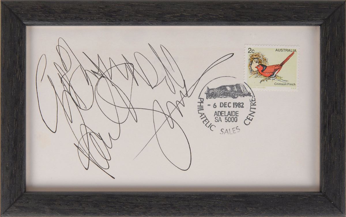 Three items: an ALS, signed "James Stewart," personal stationery, no date, in full: "I want you to know that I am very grateful to you for your wonderful letter. And thank you for the page from Helen Hayes! book again—thank you for your letter"; an FDC with a cachet honoring Radio Canada International and the opening of new high power transmitter facilities, signed in black felt tip, "Frank Capra"; and a framed philatelic cover, 6.25 x 3.5, postmarked December 6, 1982, Philatelic Sales Center, Adelaide, signed in black ink by Paul Simon and Art Garfunkel. In overall fine condition.