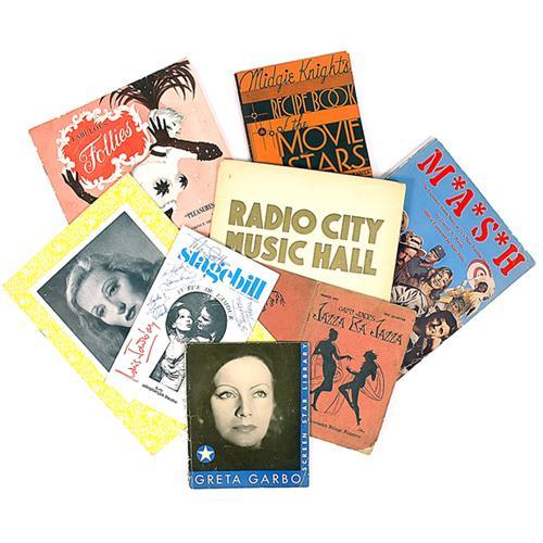 <Our item number 140052><B>Entertainment Memorabilia.</B> Playbills (1 signed by Louis Jourdan and cast of "13 Rue de L'Amour"), souvenir programs (including Radio City Music Hall), books, booklets, magazines, scandal magazines, dating from 1922 through the 1950's; rare 1933 recipe book of the movie stars; Mash history book; 4 T.V. scripts (Matlock, Northern Exposure, TJ Hooker), film script "Nixon" with affixed Bob Hoskins signature; an awards program signed by Ernest Borgnine. <BR>Estimated Value $200 - 300. <BR><BR>Our item number 140052<BR><IMAGES><P ALIGN="CENTER"><IMG SRC="http://www.goldbergcoins.net/liveauction/49jpegs/140052.jpg"> </P></IMAGES>