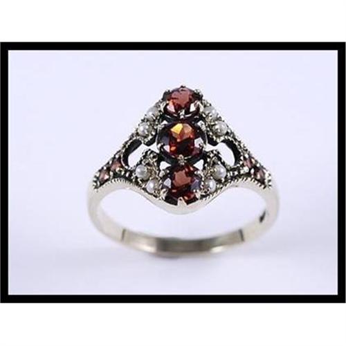<tr><td>Title:Enticing 9K Yellow Gold Garnet and Pearl Ring</td></tr>