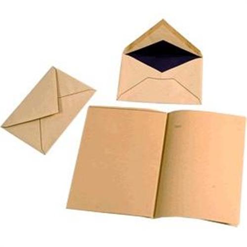 This is an european style envelope. The inside portion of the envelope contains lining of blue paper. The entire envelope has a border of golden colour. The paper has an embossed design on it. The envelope and the paper are of same material, colour and pattern.