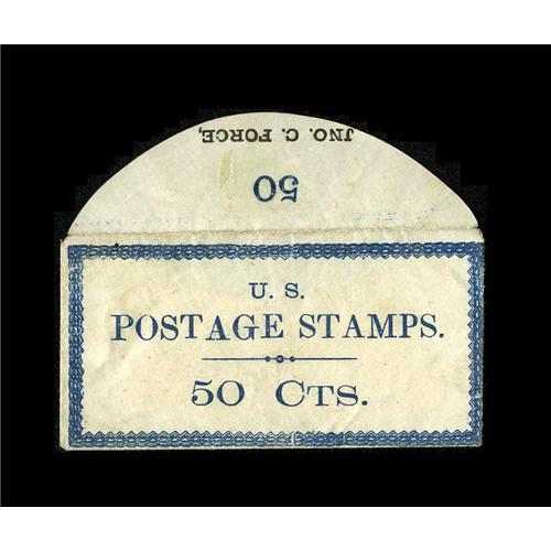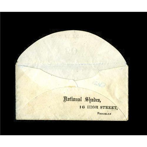 <B>Postage Stamp Envelope 50¢ JNO. Force Brooklyn, NY About New.</B></I> Listed in Krause and Lemke as number KL34-50, this very rare issuer was located in Brooklyn, NY. Now part of New York City, Brooklyn, at the time when these pieces were issued in 1862, was an independent city. The piece is in perfect condition printed in blue on the face and black on the back. Force's full business address "JNO. C. Force, National Shades, 16 High Street, Brooklyn" is listed on four lines on the flap and back of the envelope. A great piece.<BR><BR><b>Shipping:</b> Coins & Currency (<a target="_blank" href="http://www.heritageauctions.com/common/shipping.php">view shipping information</a>)