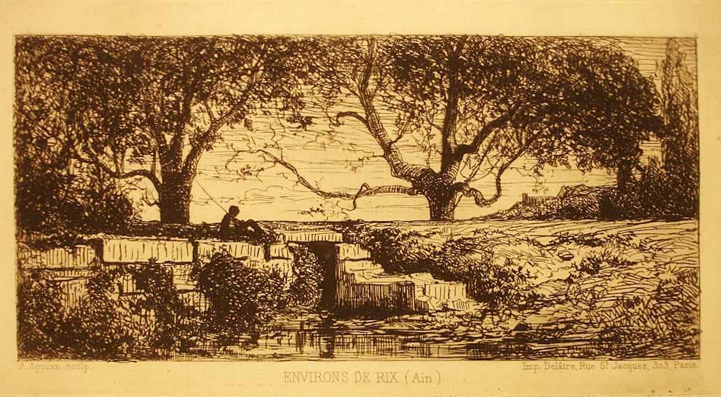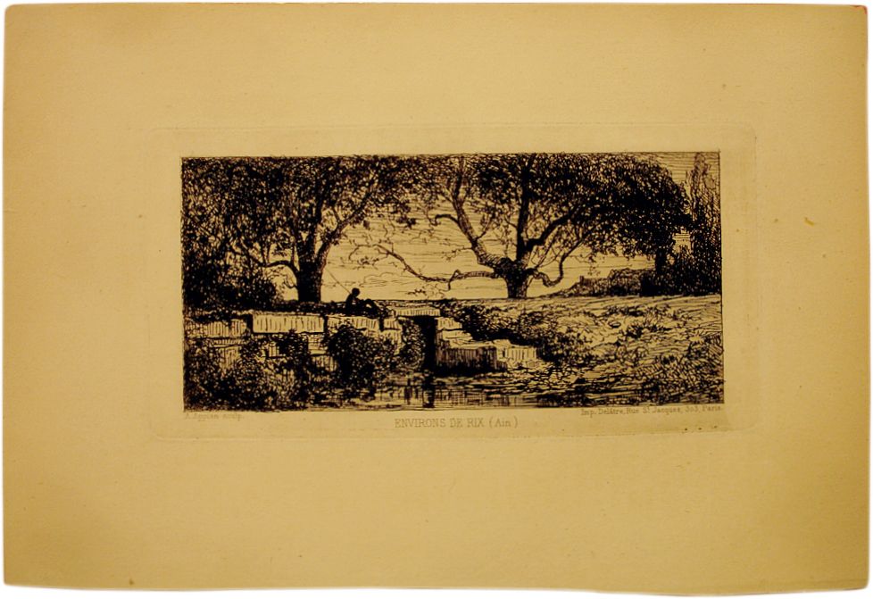 Good condition. Oxidation due to aging. Glued on a matt board frame.