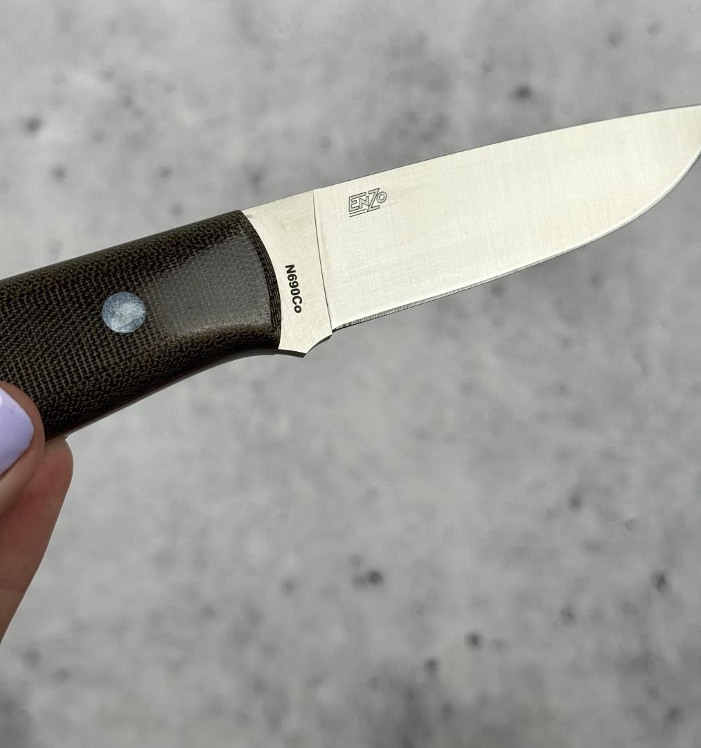 Fixed blade. Micarta handle, N690 steel. 8" long. Never used or carried.