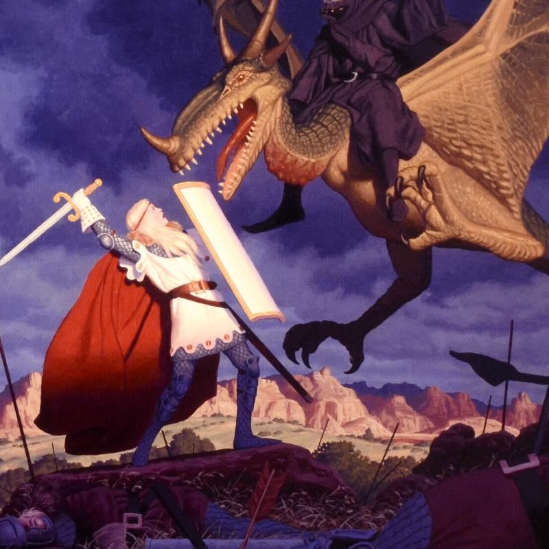Known world wide for their fantasy and science fiction illustrations, identical twin brothers Greg and Tim Hildebrandt created an abundance of fascinating artwork, most notably their illustration work for J.R.R. Tolkien's 'The Hobbit' and 'Lord of the Rings'. "Eowyn And The Nazgul", originally created in the 1970's for Ballantine Books, is a limited edition giclee on canvas, numbered and hand signed by Greg Hildebrandt! Includes Certificate of Authenticity! Measures approx. 28" x 21" (image).