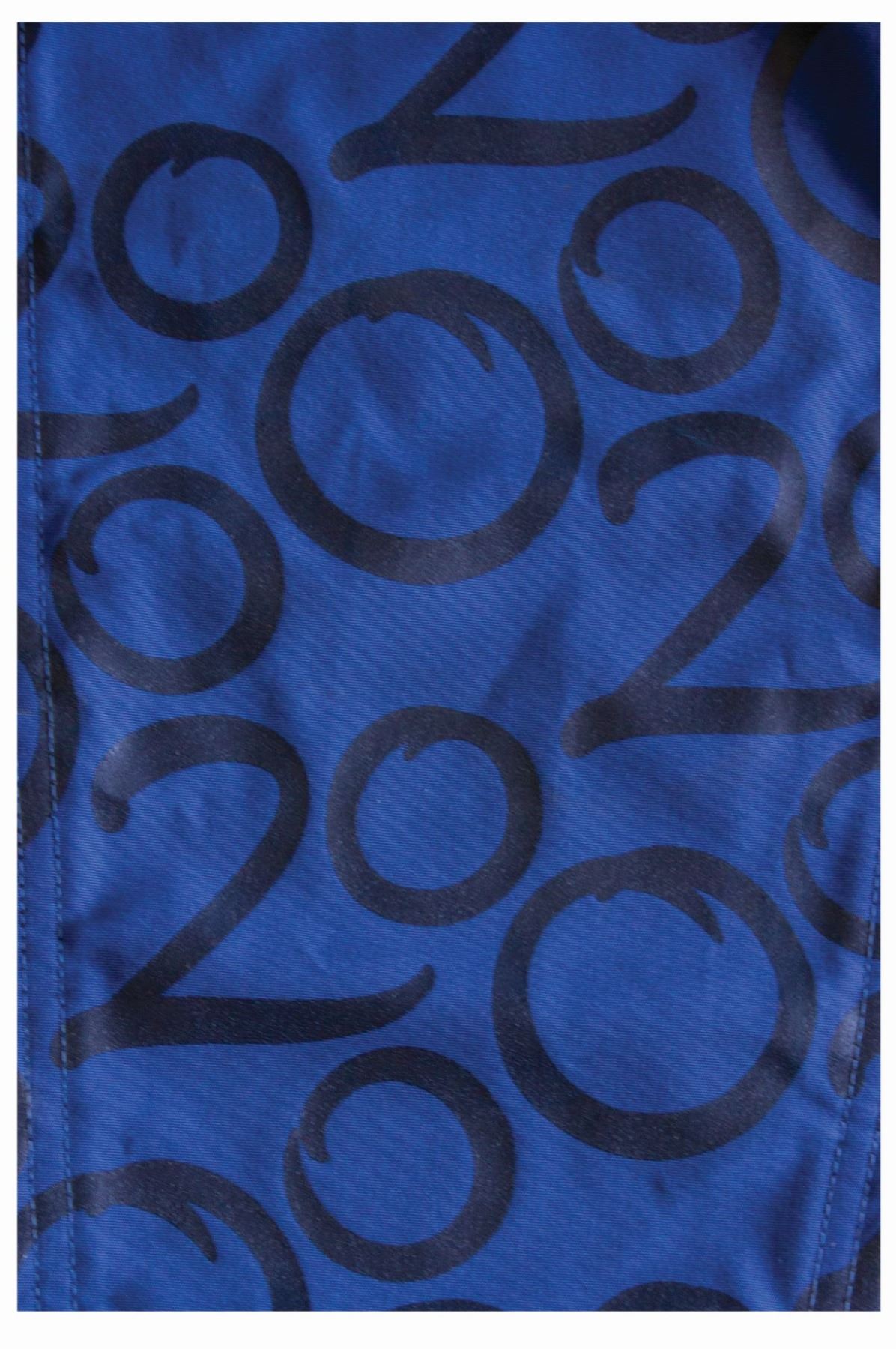 (Epcot, 2000) An original fabric banner that was displayed at Epcot during the Millennium Celebration for the year 2000. Featuring the hidden-Mickey pattern that reads "2000", this banner is a dtylish artifact from this well-remembered park celebration. Measuring 58"x14", the banner is in fair condition with surface wear from use, a missing grommet, and a 0.5" tear at the tip.
