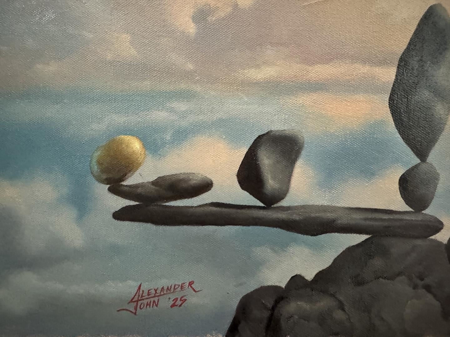 Dazzling original 40x30" oil by Alexander John. Hand signed by artist. This artwork comes beautifully floater framed 42x32" and ready to hang.