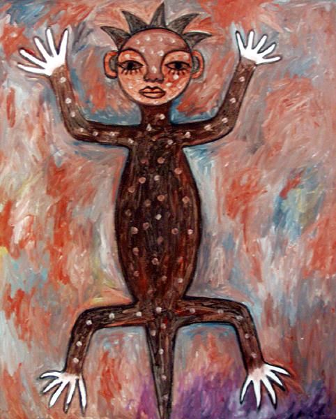 Artist: Ephrem Kouakou Title: Untitled (Lizard Figure)Medium: Acrylic & Pigment on Canvas Image size: 38 x 36 inchesBiographyEphrem Kouakou an Ivory Coast native, has exhibited his work in the United States, Switzerland, Belgium, and France. His