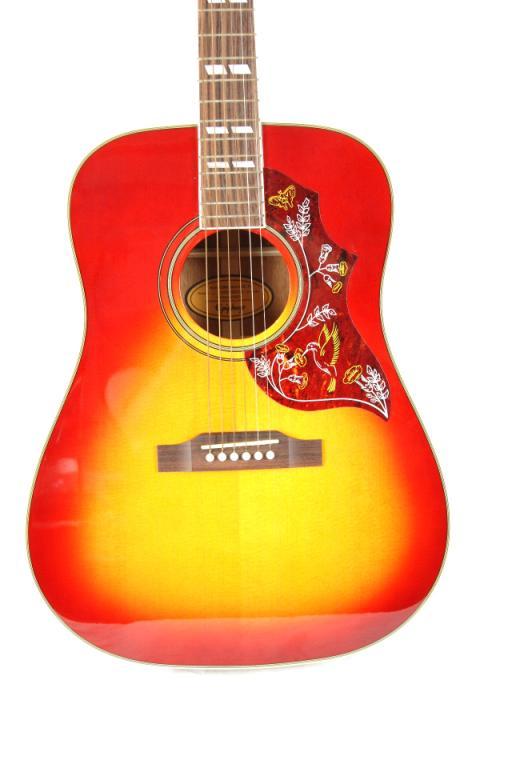 The classic of classic acoustics, the Hummingbird is instantly recognizable, both in look and it's warm acoustic sound. Made from Mahogany back and sides, with a Solid Spruce top that actually improves with age, it's easy to see and hear why this guitar has become a legend.