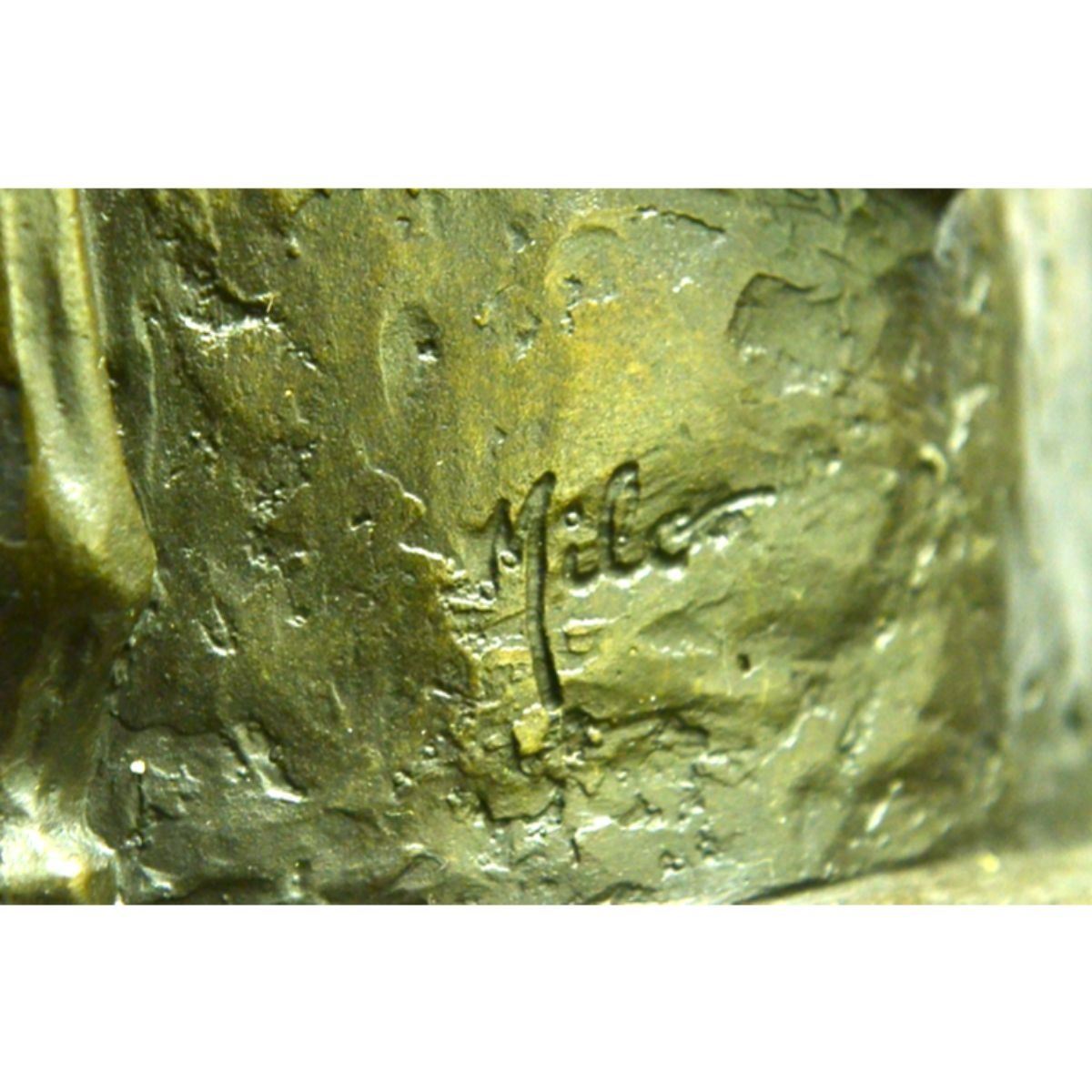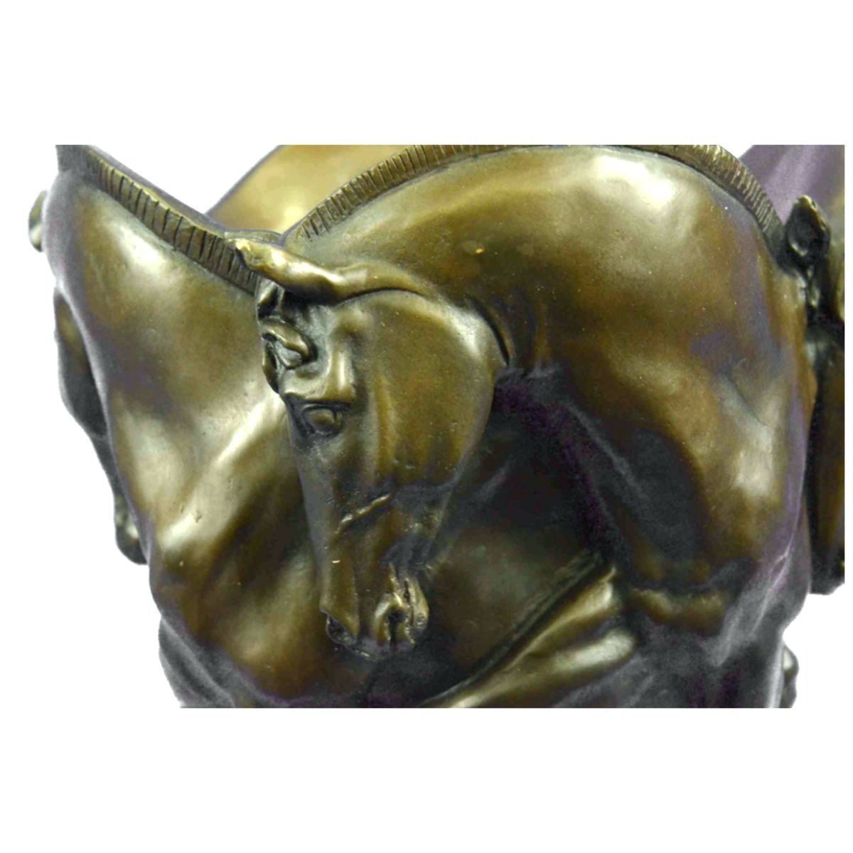 Equestrian bronze planter vase, four horses. Signed Milo. Lost wax casting method bronze, with brown patina. 10" H X 8" W. 8 lbs weight.