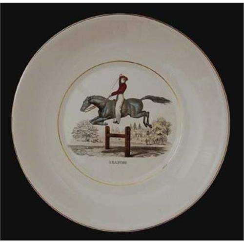 Equestrian wall / cabinet plate depicting a young man dressed in 19th Century attire on his jumping horse. In good used conditions with crazing as shown (mark on underside is partially removed). Please ask questions, request additional photos and shipping costs before buying.