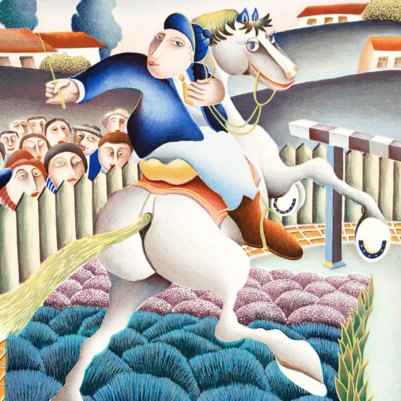 "Equestrian" is a limited edition lithograph on paper, numbered and hand signed by Yuval Mahler. Includes Certificate of Authenticity!Measures approx. 15" x 21.5" (with border), 13" x 19.5" (image).