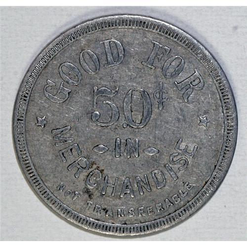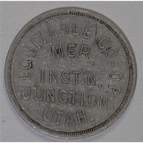 <B>Equitable Co-op Mercantile Institution, Junction, Utah.</B></I> A rare token and Good For 50 Cents in Merchandise non-transferable.