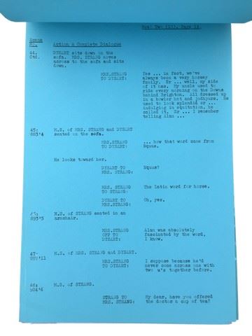 "Equus" (1977) from United Artists original picture and dialogue export script. A psychiatrist Dr. Martin Dysart (Alan Strong) who has grown unhappy with his life, takes on the peculiar case of Alan Strange (Peter Firth) a reserved teenager who has been accused of brutally blinding six horses. Dysart slowly unravels Alan's background, learning that he grew up in a very strained household with a devout religious mother (Joan Plowright) and an Atheist father (Colin Blakeley). Also starring Jerry Agutter as Jill Mason and Harry Andrews as Harry Dalton. (Approx. 13"x9").