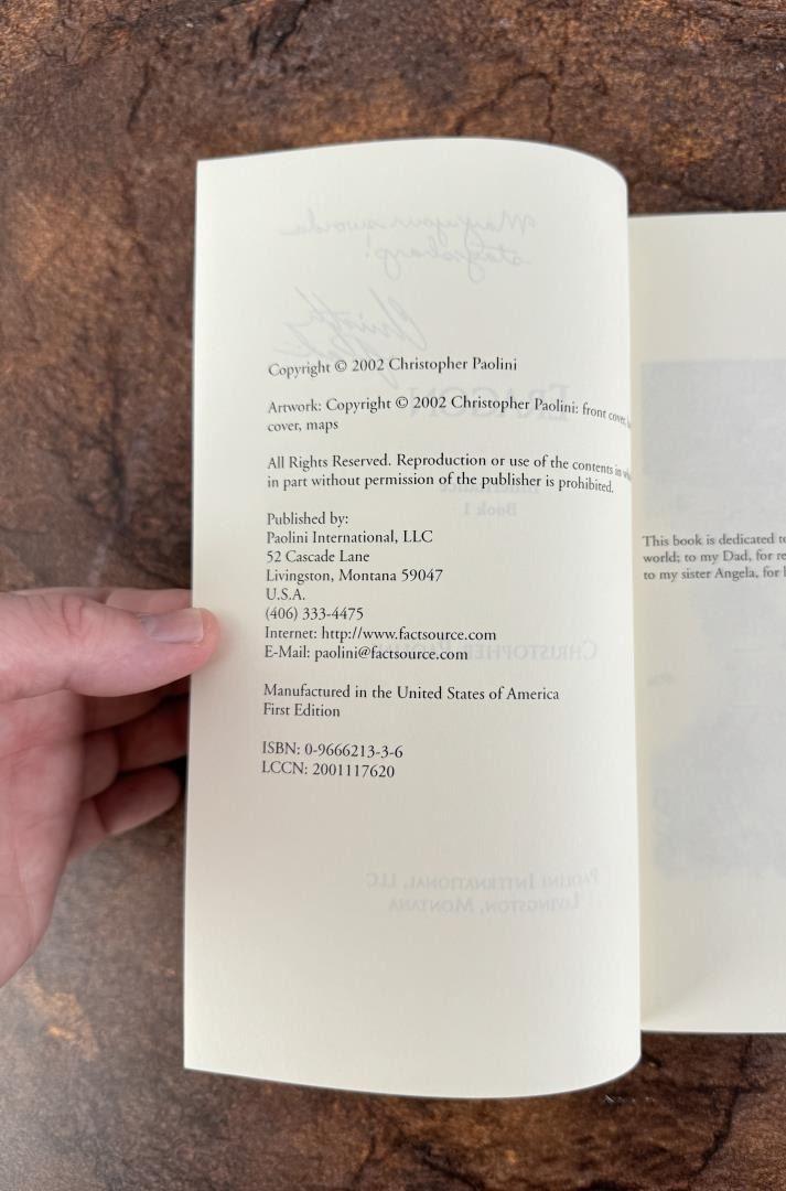 Signed self published true first edition. Signed by Author. Christopher Paolini, 2002