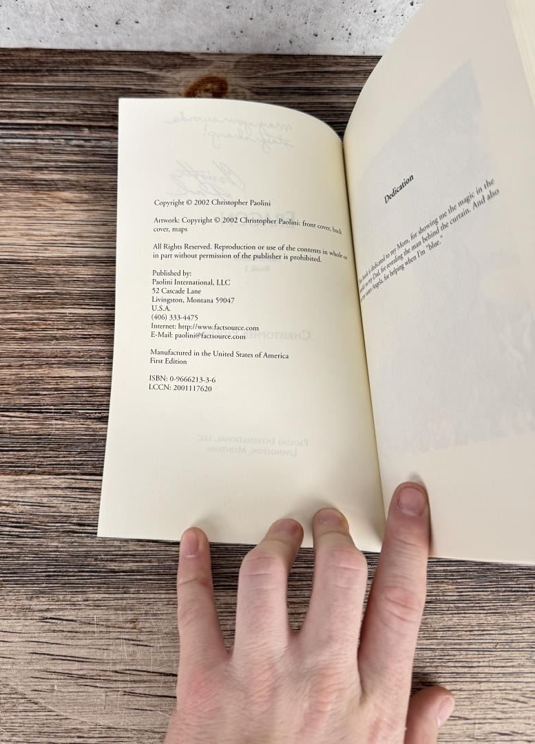 Signed self published true first edition. Signed by Author. Christopher Paolini, 2002