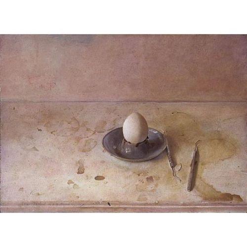 Eran Reshef<BR>Israeli painting<BR>B. 1964<BR>Still Life and an Egg<BR>1972-3<BR>Oil on wood<BR>27x37 cm<BR>Signed and dated.