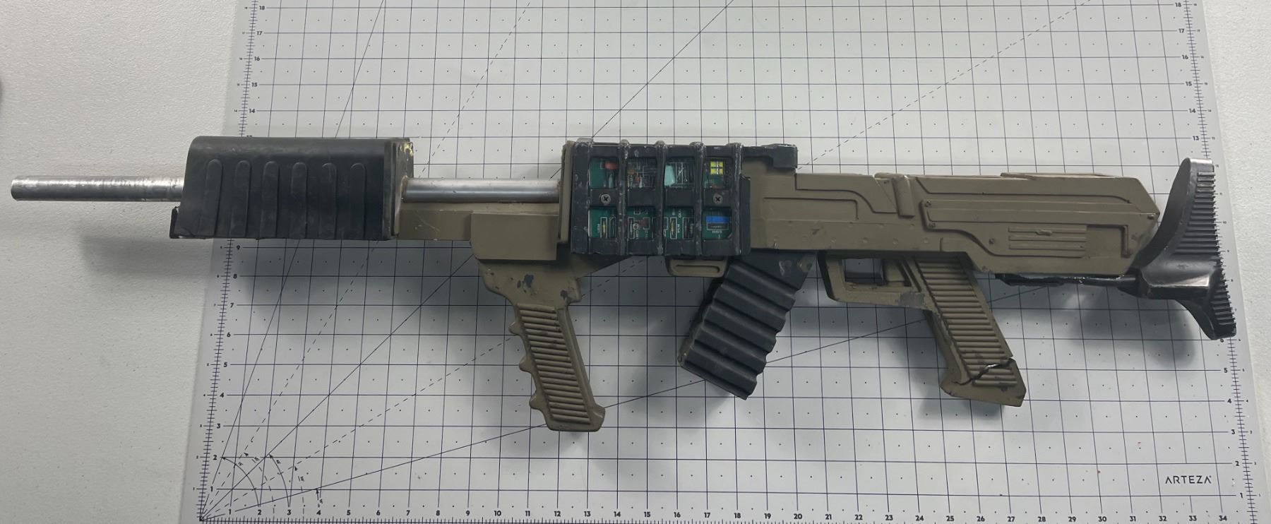 An EM-1 Annihilator Railgun from the 1998 Arnold Schwarzenegger action film, Eraser. In the film, Lee Cullen (Vanessa Williams) has discovered that the Cyrez Corporation has secretly produced an illegal weapon weapon. Now, US Marshal John Kruger (Schwarzenegger) must protect her from that corporation and its dangerous weaponry by erasing her past.