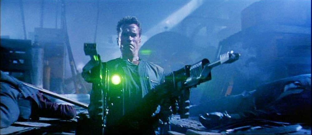 US Marshal John Kruger (Schwarzenegger) is seen using A pair of EM-1 Annihilator Railguns