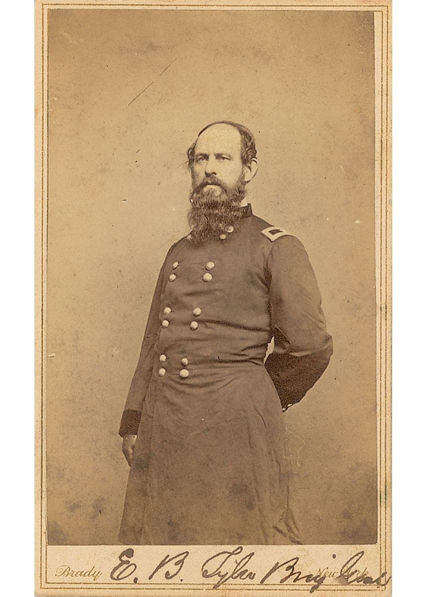 Union general (1822–1891). At the outbreak of the Civil War he helped raise the 7th Ohio Infantry and was elected their colonel. Original 2.25 x 4 carte-de-visite photo by Brady’s of New York, signed in the lower border in black ink, “E. B. Tyler, Brig Genl.” In fine condition, with a bit of scattered light toning and soiling and a small spot to rank.