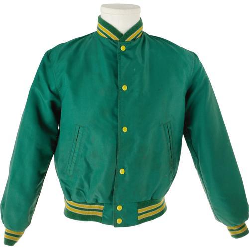 <B>Eric Clapton 1977 Tour Jacket.</B></I> Green nylon tour jacket with green-and-yellow trim and large Tasco sponsorship patch on the back, in Very Fine condition with mild wear and soiling.<I>From the Robert Johnson Memorabilia Collection.</B></I><BR><BR><b>Shipping:</b> Clothing, Costumes & Jerseys (<a target="_blank" href="http://www.heritageauctions.com/common/shipping.php">view shipping information</a>) <BR><BR><B>Important notice:<