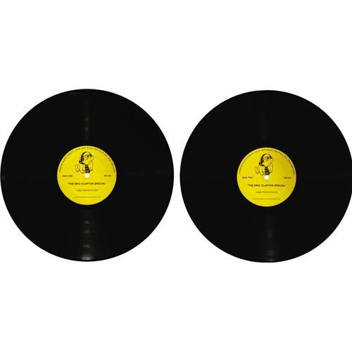 <B>Eric Clapton Promo LP Group 2 (1984-87).</B></I> A must for "Slowhand" fans! Included are "BBC Eric Clapton Special", a 2-disc set and cue sheet full of interviews and record cuts (London Wavelength, 1984), and the "King Biscuit Flower Hour" 2-disc set (but just 3 sides) with cue sheet, broadcasted March 8, 1987. The latter featured recordings from Clapton's 1986 tour. Condition for both sets: NM 8.<BR><BR><b>Shipping:</b> Recordings (<a target="_blank" href="http://www.heritageauctions.com/common/shipping.php">view shipping information</a>)