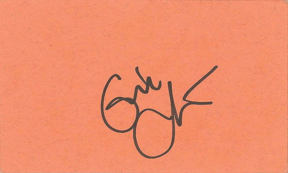Felt tip signature, "Eric Clapton,” on a peach-colored 5 x 3 card. In fine condition. Originally obtained by in-person specialist Mike Wehrmann.