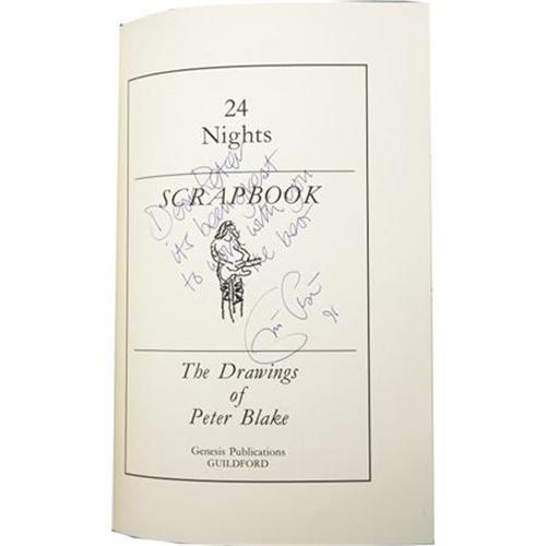 <B>Eric Clapton Signed Limited Edition "24 Nights" (Genesis Publications, Ltd., 1981).</B></I> Genesis Publications is famous for their limited edition books and boxed sets of Rock icons, which become immediate collectibles among fans. We're very pleased to be offering three of the deluxe sets in our current auction (see the Everything Beatles section for the others). This is a box set format, titled <I>24 Nights</B></I> and numbered #1,262 in a limited edition of 3,500. The set consists of a 128-page, 8.5" x 12" hardbound scrapbook of drawings by Peter Blake, that's been autographed by Eric Clapton and features a "Thank You" to artist Peter Blake by George Harrison (whose 'autograph' is printed); a companion 58-page, 6" x 8.5" hardbound commentary by Derek Taylor; an envelope containing a guitar string, backstage pass, badge, and four guitar picks, all in a clamshell case; and two limited edition CDs of live recordings. The volume is in most Excellent condition. <I>Accompanied by LOA from PSA/DNA.</B></I><BR><BR><b>Shipping:</b> Books & Catalogs (<a target="_blank" href="http://www.heritageauctions.com/common/shipping.php">view shipping information</a>)