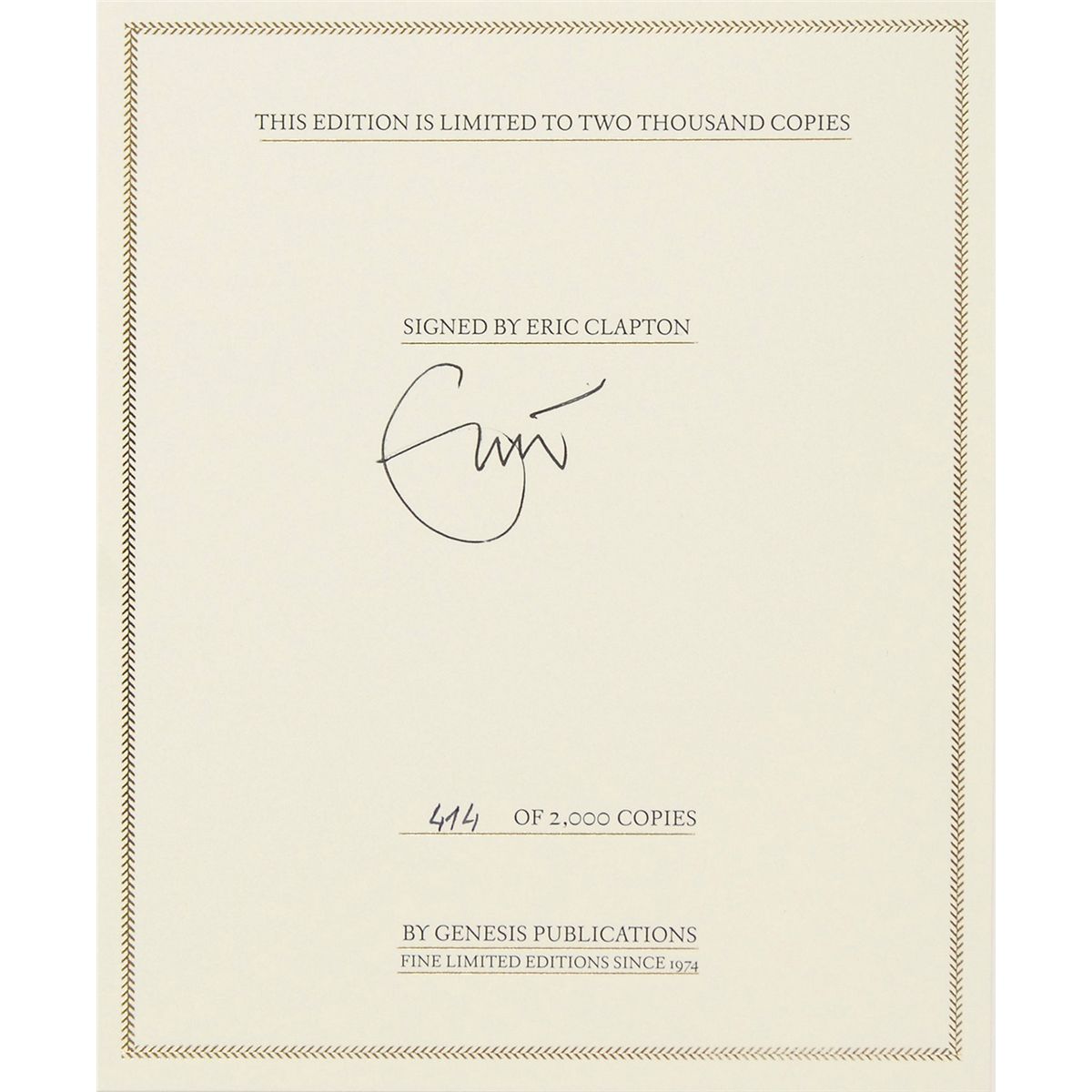 Signed book: Six String Stories: the Crossroads Guitars. Limited edition of 2000 copies (this being No. 414). Guildford, England: Genesis Publications, 2012. Signed in black ink on a bookplate affixed to the colophon. Book is housed in its cloth bag. In very fine condition.