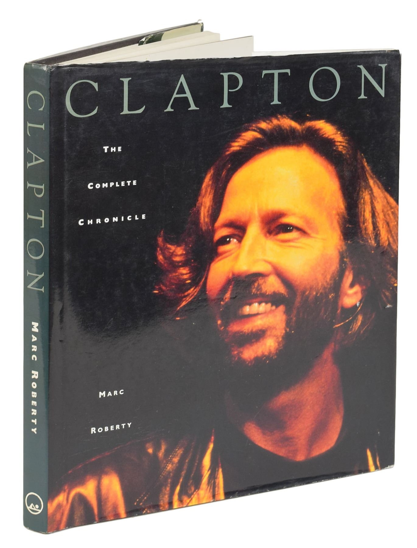 Signed book: Clapton: The Complete Chronicle. First edition. London: Pyramid Books, 1991. Hardcover with dust jacket, 9.75 x 11.25, 176 pages. Signed on the page adjacent to the half-title page in blue ballpoint, "Eric Clapton, 93." In fine condition, with light wear to the dust jacket.