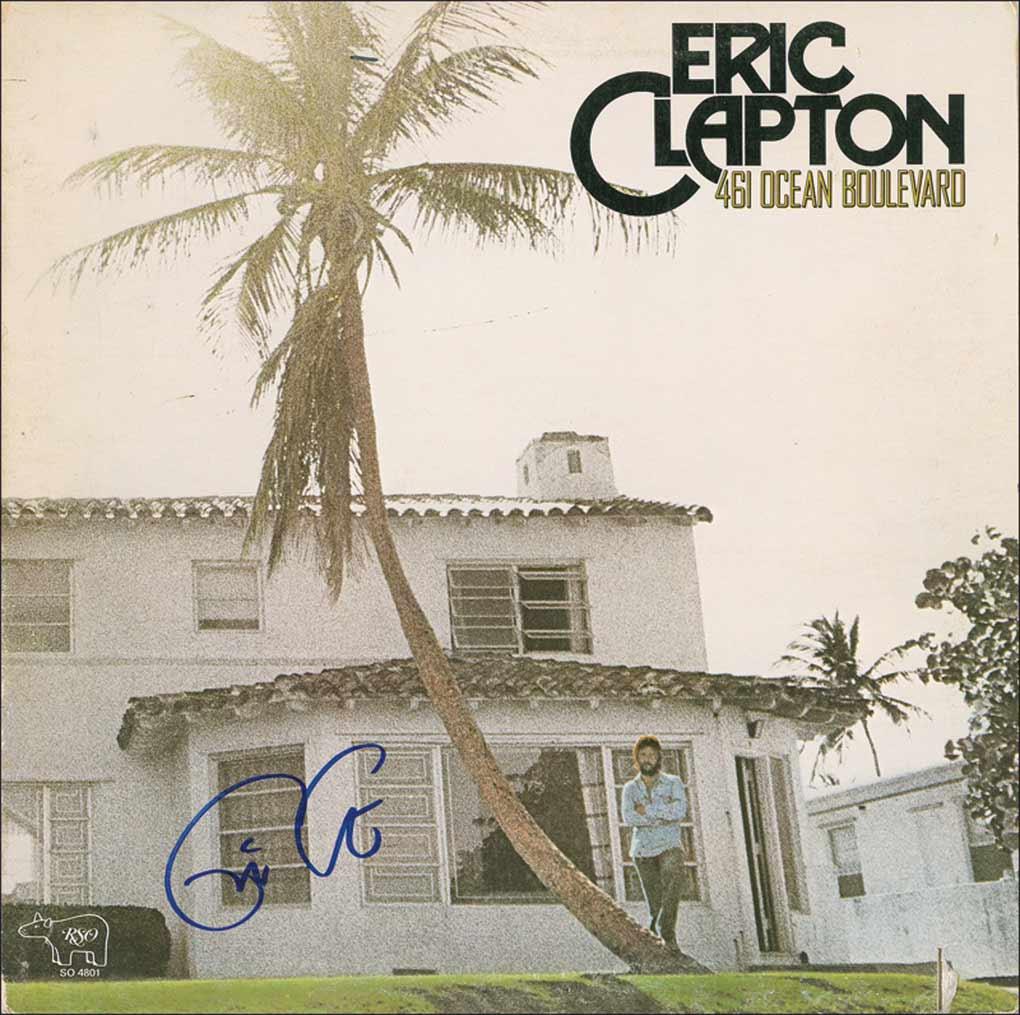 461 Ocean Boulevard album signed on the front cover in blue felt tip. Some scattered light cover wear and toning, and a discount cut to bottom edge, otherwise fine condition. The record is included.