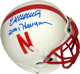 In 2001, Eric Crouch had his best year yet, breaking school or NCAA records almost weekly and appearing to be a serious contender for the Heisman Trophy. Crouch became only the fourth player in Division 1 history to both pass and rush for 3000 yards in a career. By mid-November, Crouch had set a school record for most career wins as a starter and became only the ninth quarterback in D-1A history to have won 35 games as a starter. Crouch was announced as the recipient of the Heisman Trophy award. His outstanding season was also recognized when he won the Davey O'Brien Award for being the best collegiate quarterback in the nation during the 2001 season. Eric Crouch has hand autographed this Nebraska Cornhuskers Schutt Authentic mini helmet with 2001 Heisman Inscription. Certificate of Authenticity from Athlon Sports.