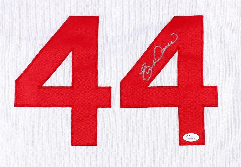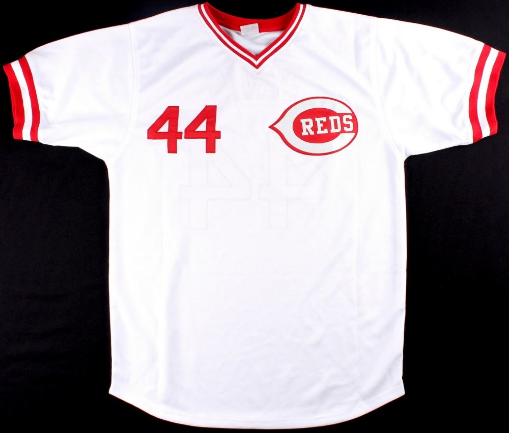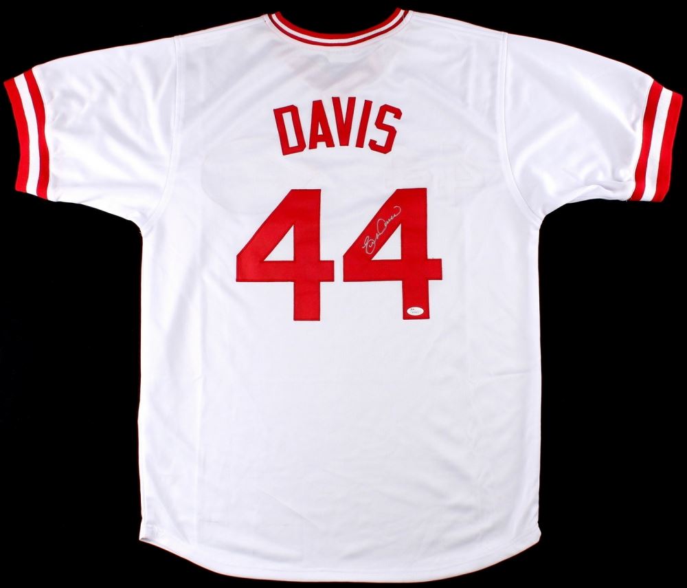Custom on-field style jersey. Everything is sewn on, size XL. Hand-signed in silver paint pen by Eric Davis. The autograph includes an official James Spence Authentication (JSA) hologram and matching COA for authenticity purposes. The signing of this item was witnessed by JSA.