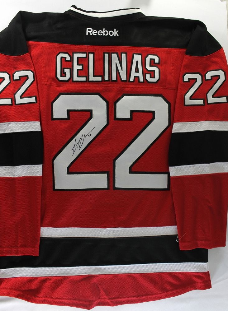 Reebok on-ice style jersey. Everything is sewn on, size 54. Hand signed in black felt tip pen by Eric Gelinas. The autograph includes an LOA and lifetime authenticity guarantee from Pristine Auction.