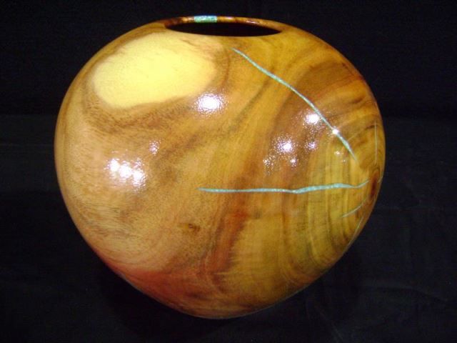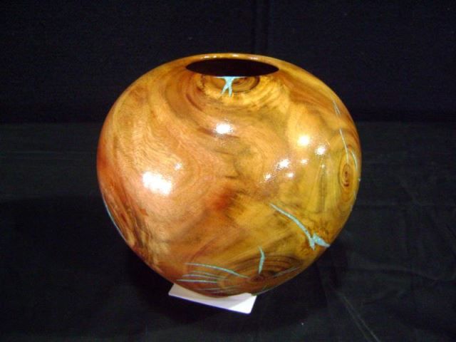 Eric Lima Carob-Wood Pot Inlaid w/ Turquoise 7 1/4"x7"x2 1/2 Retail: $1,800.00