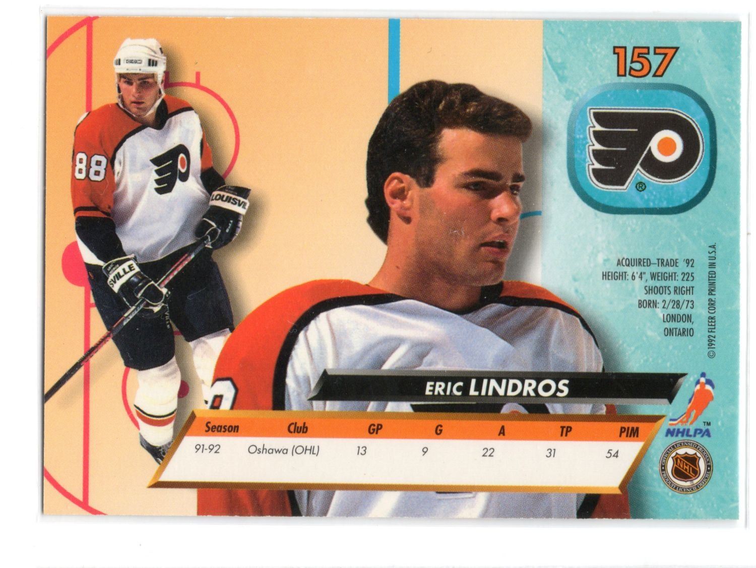 Eric Lindros Rookie Card 1992 Fleer #157