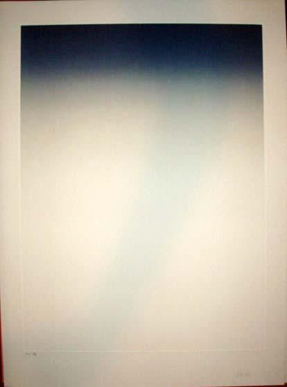 The gradiated blue of this print looks like a sky on the horizon. * Artist: Eric OrrSignature: Signed by the artistTitle: "MU 3"Medium: Etching on paperSize: 30" x 22" Edition: Limited, numberedCondition: Excellent