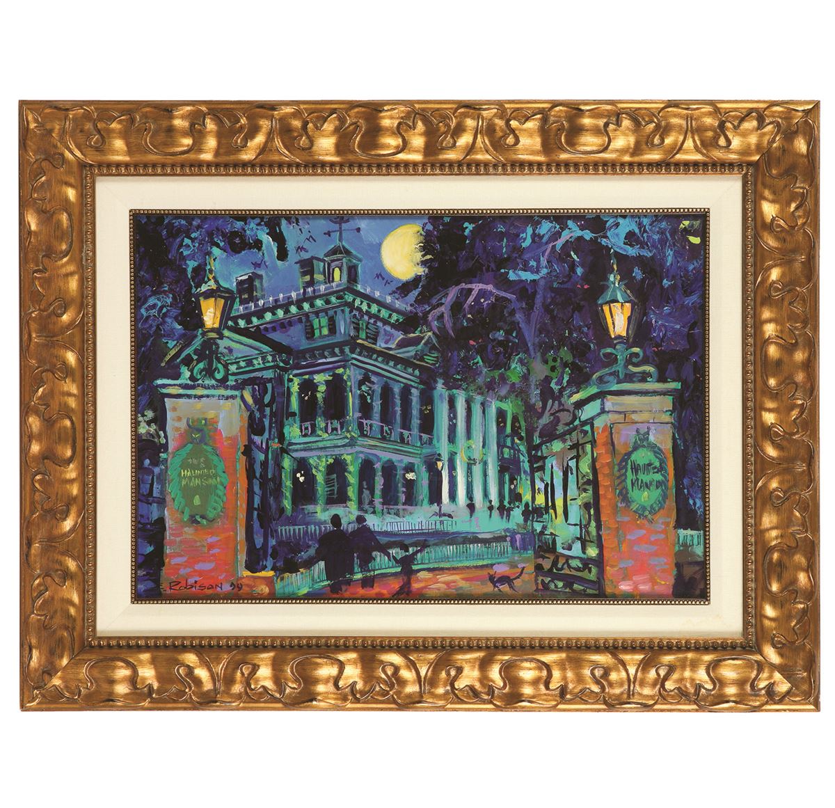 (Disney Gallery, 1999) Original Painting by artist Eric Robison titled Tribute to The Haunted Mansion . Robison has been a Disney Artist since 1989 and his Limited Edition Lithographs are the best selling at Disney Theme Parks world wide. His originals are highly sought after by collectors. Accomplished in Acrylic on canvas, the painting measures 15" x 22". In fine condition.