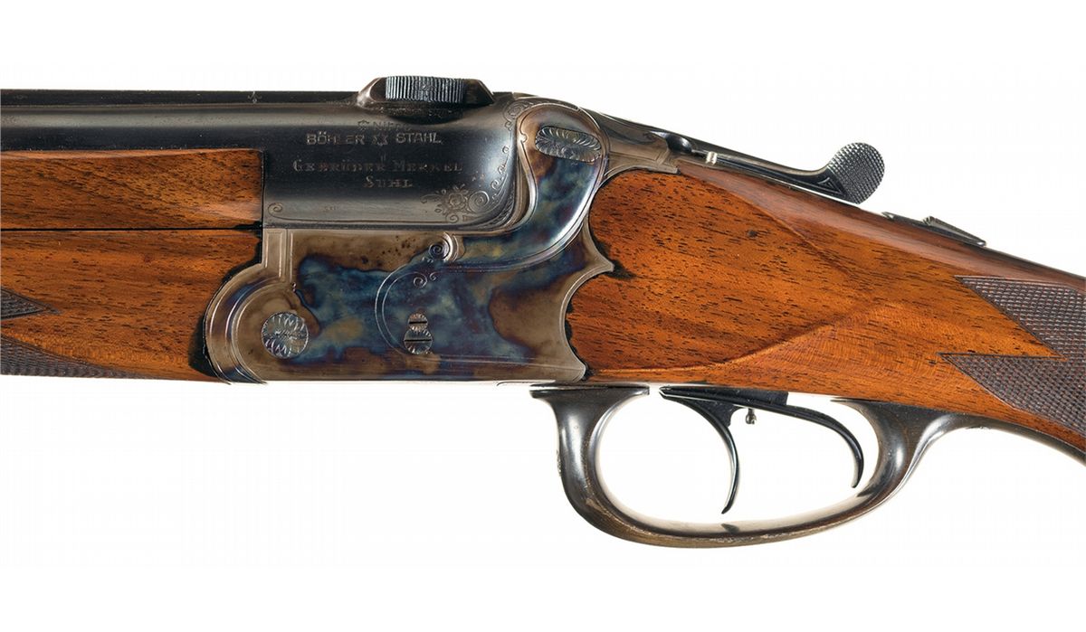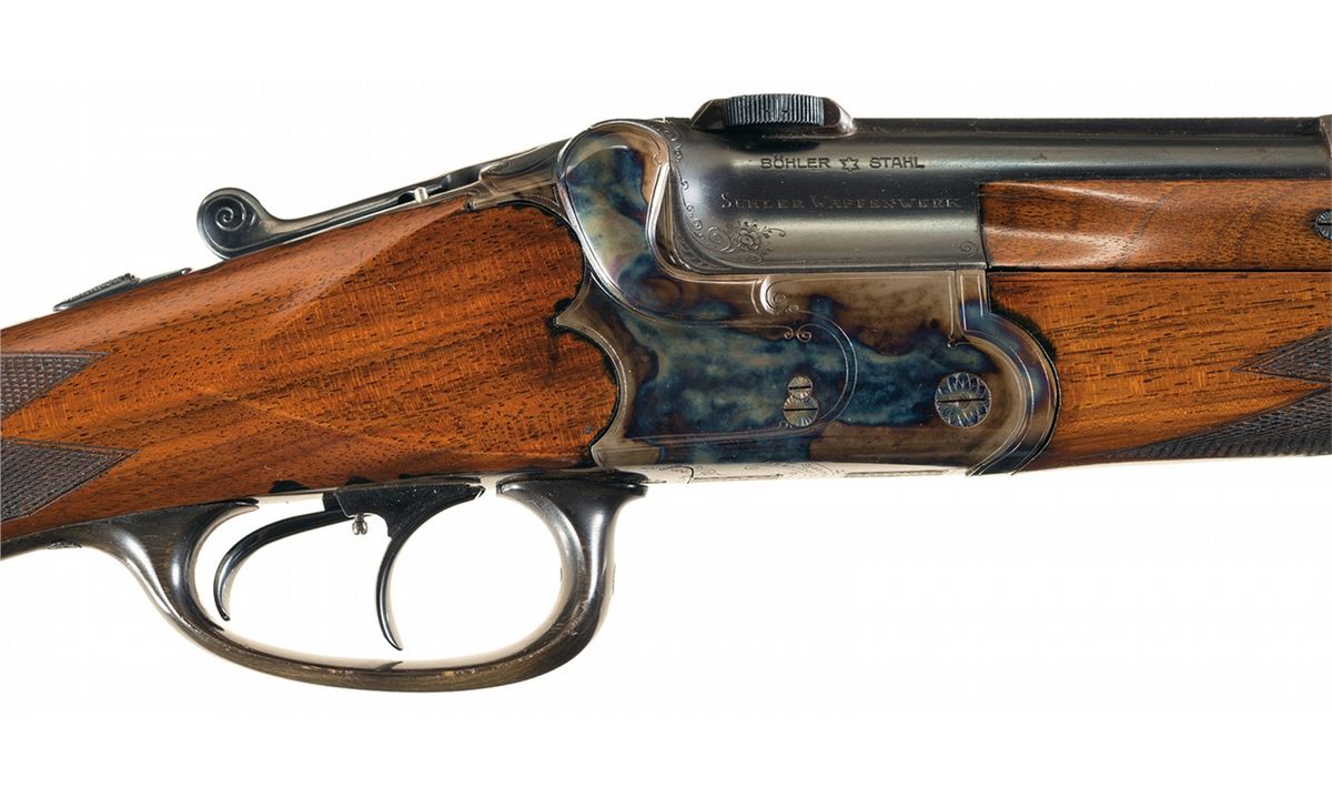 Erich Deissner Retailer Marked Gebruder Merkel Over/Under Scalloped Box Lock Combination Gun with Scope