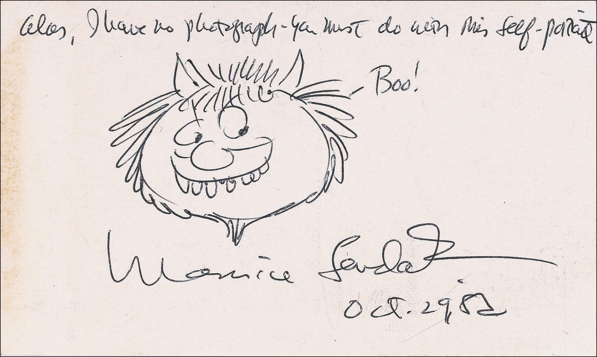 Author, screenwriter, and educator. He was best-known for writing the novel Love Story, a bestseller, and writing the motion picture of the same name. One page ALS, in French, dated April 29, on Yale University letterhead, returning a questionnaire to a correspondent and apologizing for his poor French. Included is the seven-page questionnaire, with questions and responses in French. Segal offers some intriguing responses including his favorite painter (Walt Disney), favorite musician (Aznavour), and favorite author (Boris Vian). He offers a couple other candid responses including how he would like to die (”on the finishing line of the 1997 Olympic games marathon”), and the worst thing that could happen to him (”to lose my sense of humor”). In very good condition, scattered with creasing and handling wear. RRAuction COA.