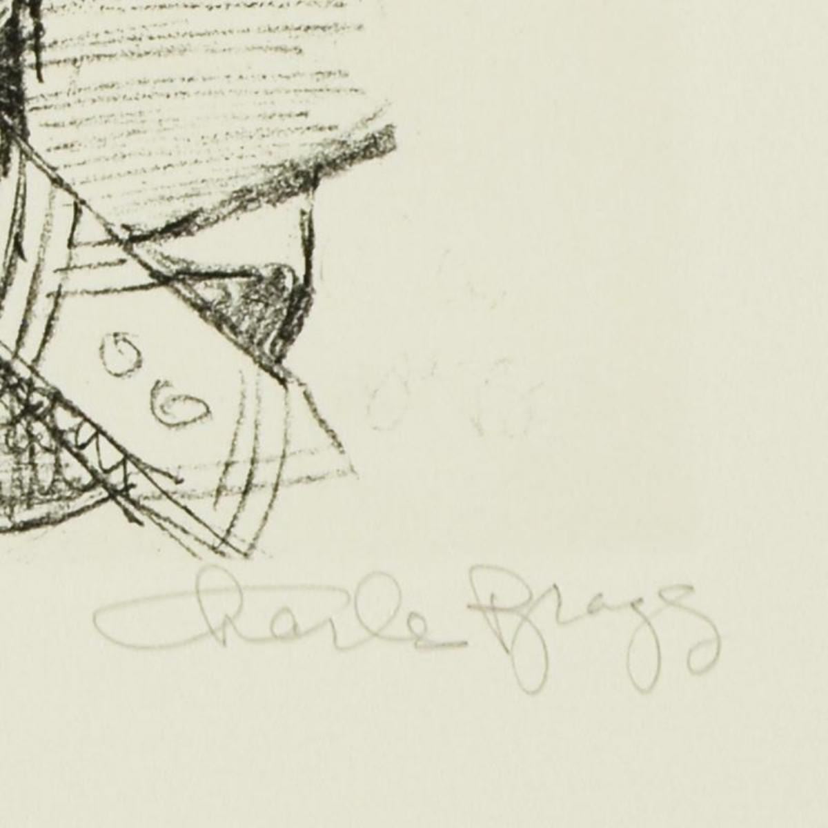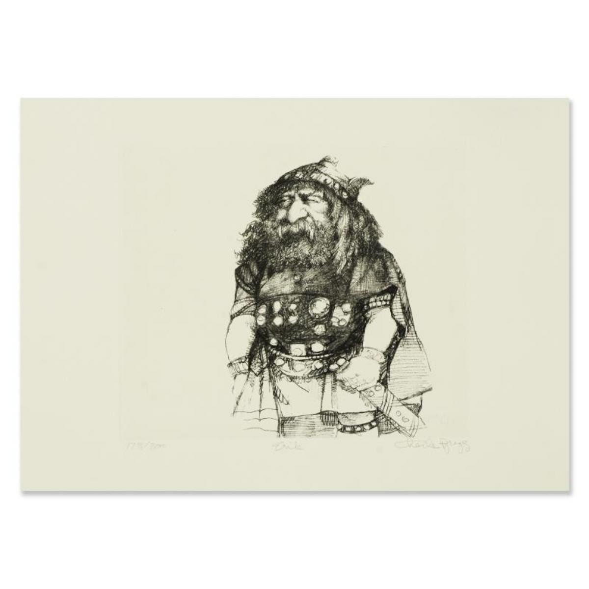 Erik by Bragg, Charles. "Erik" is a limited edition etching on Paper by Charles Bragg (1931-2017), numbered and hand signed by the artist. Includes Letter of Authenticity. Measures approx. 15" x 11" (border), 9.5" x 8.5" (image).