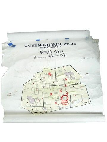 “Erin Brockovich” (2000) was a box office smash and critically acclaimed feature based on the real life Ms. Brockovich, and her amazing modern David and Goliath story. Julia Roberts (who won an Oscar for her portrayal), plays Erin, a rather fowl mouthed, “stay it like it is”, extremely outspoken struggling single mother in the San Fernando Valley, who shames her second rate lawyer into giving her a clerk job at his struggling small law firm, after he blows an accident case of hers. With virtually no education, she immediately takes on the massive PG&E Utility Company for leaking a cancer-causing chemical into the tap water of a local rural town, creating horrific sickness and death among the many residents. With nothing more than astonishing energy, herculean determination, and a photographic memory, not to mention hyper-scrupulous organization, Erin helps to win the largest class action suit against a utility company in history! These are a collection of the actual hero screen used maps, photos and diagrams that Julia Roberts creates and shows, which helps to generate this astonishing out-of-court settlement. The documents are all roiled up and of various sizes and conditions. Many have frayed edges, and wrinkling and “aging” to show their use in the production. A unique collectable for lovers of both this astonishing movie, and for Julia Robert fans. Or for anyone who believes that the common man and woman can fight Goliath and win!