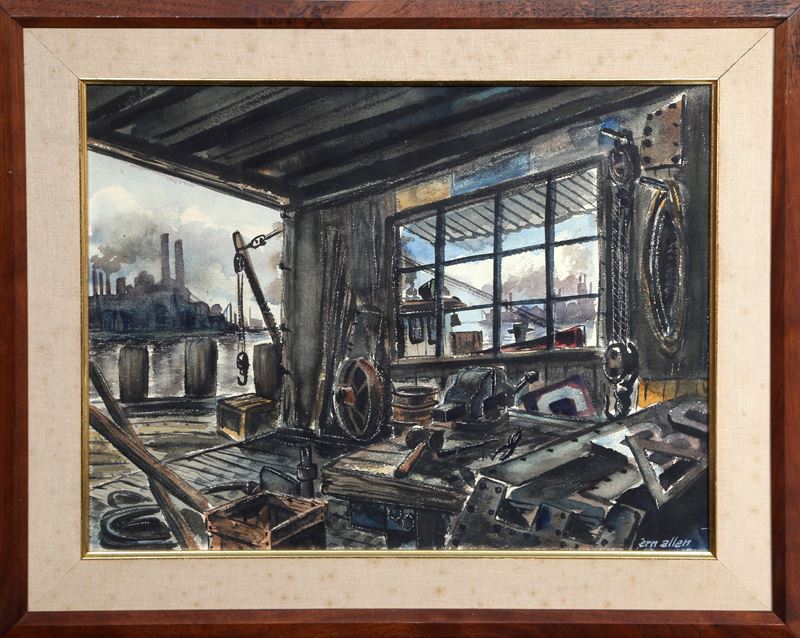 Ern Allen, Work Room on Bay, Watercolor Painting