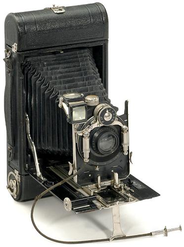 Heag XVI - With Interchangeable Magazine for Film, 1909 Ernemann, Dresden. Size 9 x 12 cm, with Aplanat-Symetric 1:6,8, pneumatic shutter 1-1/100 sec., interchangeable magazines for film or plates, very nice condition.<Br>