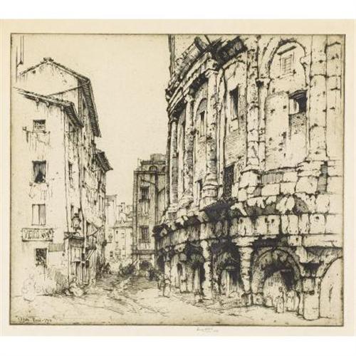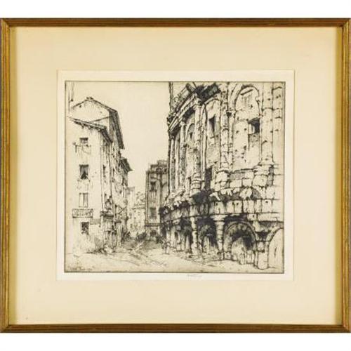 <B>ERNEST DAVID ROTH (American, 1879-1964)</B></I><BR><I>Rome</B></I>, 1914 - 1915<BR>Etching<BR>11-1/4 x 13-1/8 inches (28.7 x 33.3 cm)<BR>Signed, titled and dated lower left: <I>E. D. Roth / Rome / 1914</B></I><BR>Signed and dated in pencil lower center: <I>Ernest D. Roth / 1915</B></I><BR> <B>Condition Report:</B> Overall very good condition; not examined outside the frame.<BR><BR><b>Shipping:</b> Framed - with Glass, Small (<a target="_blank" href="http://www.heritageauctions.com/common/shipping.php">view shipping information</a>)